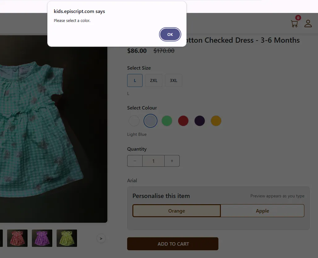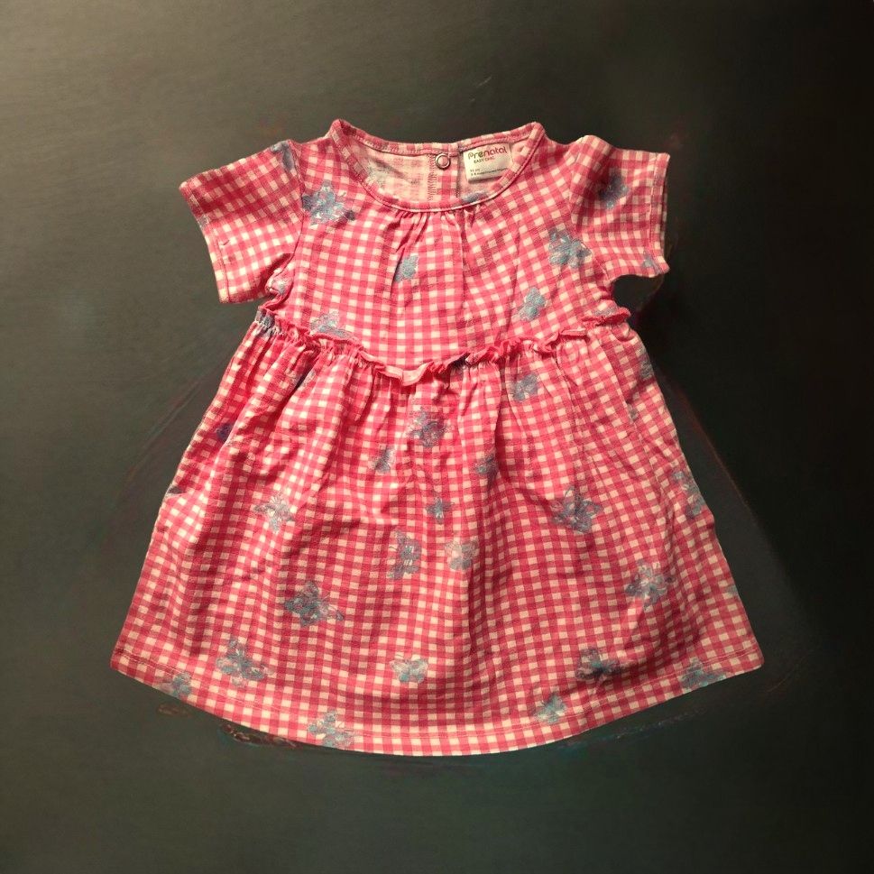 Baby Girls Pink Cotton Checked Dress - 3-6 Months